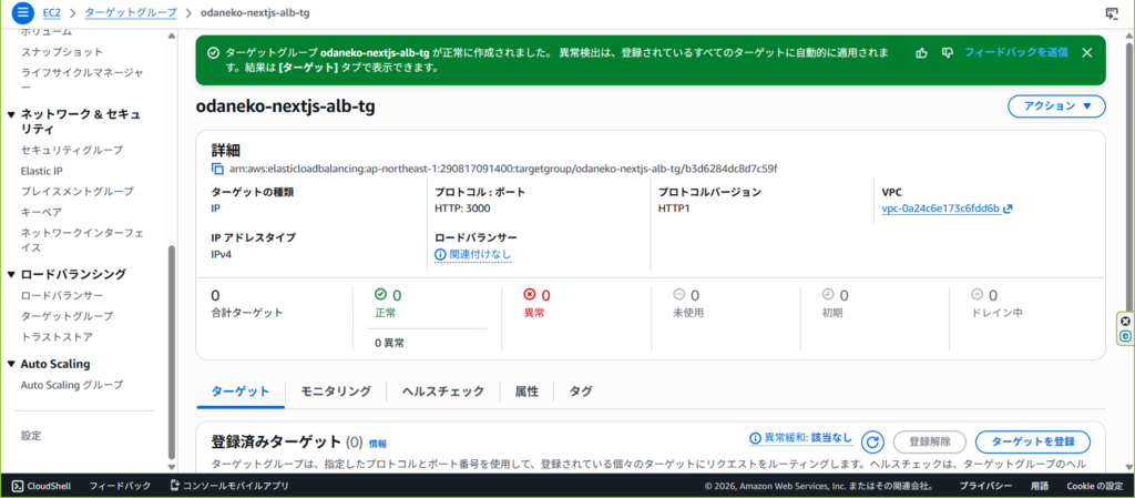 当記事は「Next.jsをECS上で動かしてみる」の第8回「ALBを作成してターゲットグループにECSを指定してみる」になります。