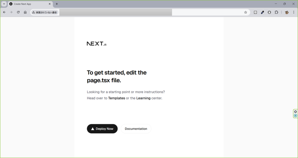 ブラウザのURLに張り付けてNext.jsのウェルカムページが表示されたらOK。