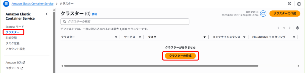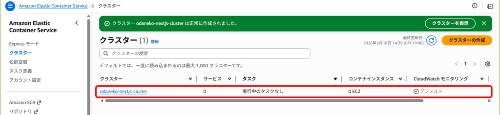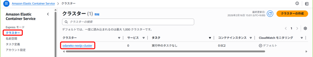先ほど作成したクラスターをクリック。
