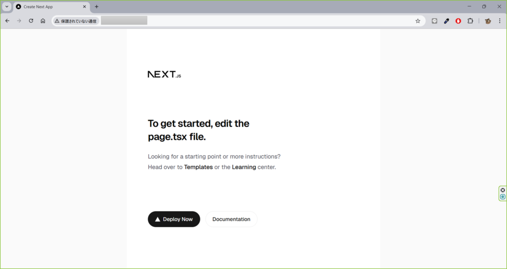 Next.jsのウェルカムページが表示されていればOKです。