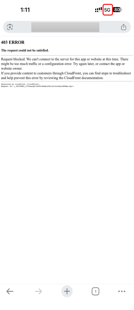 左がスマホ回線でアクセスしたとき、許可されていないIPのためアクセス不可。