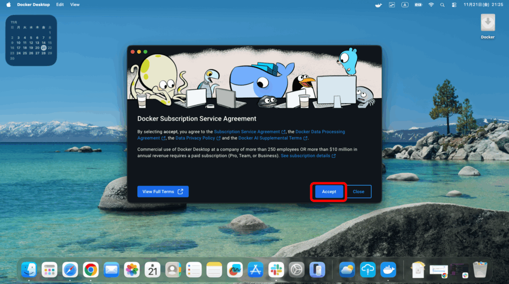 かわいいイラストのポップアップが出るので、Acceptをクリック。
