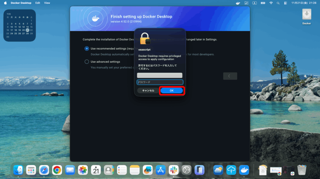 デフォルトで選択されている推奨設定のまま、Finishをクリック。