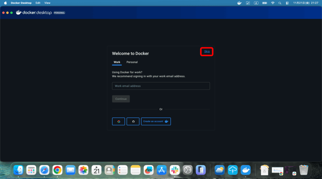 とりあえずサインアップ・サインインなしでOKなのでSkipをクリック。