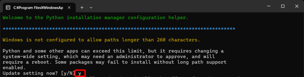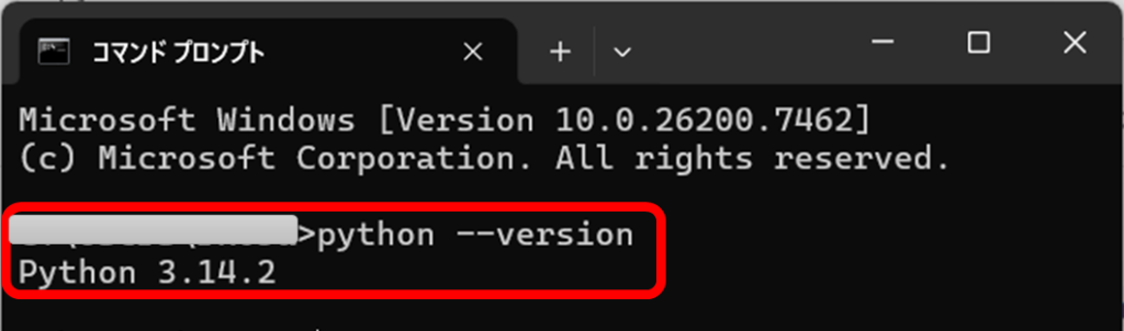 コマンドプロンプト等でPythonのバージョンを確認するコマンドを実行して、バージョンがリターンされたらインストールが完了。