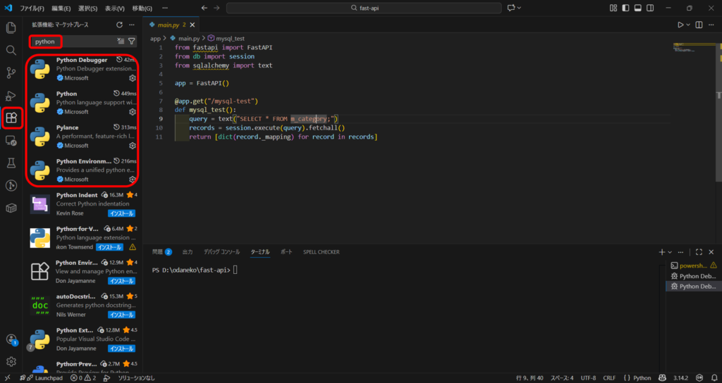 Pythonで検索してMicrosoft発の拡張機能を片っ端からインストール。