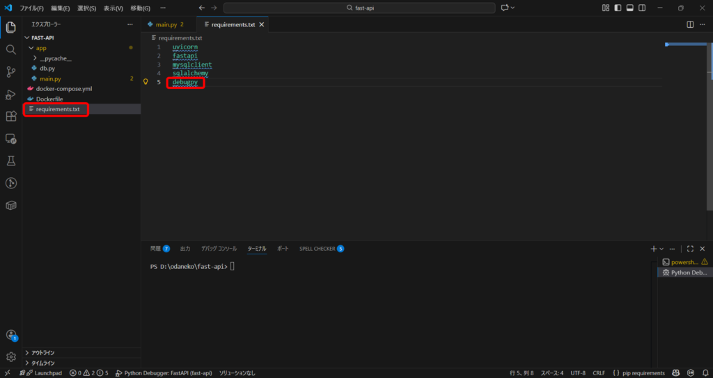 VSCodeでDocker上のFastAPIをデバッグしてみる(Windows11)
