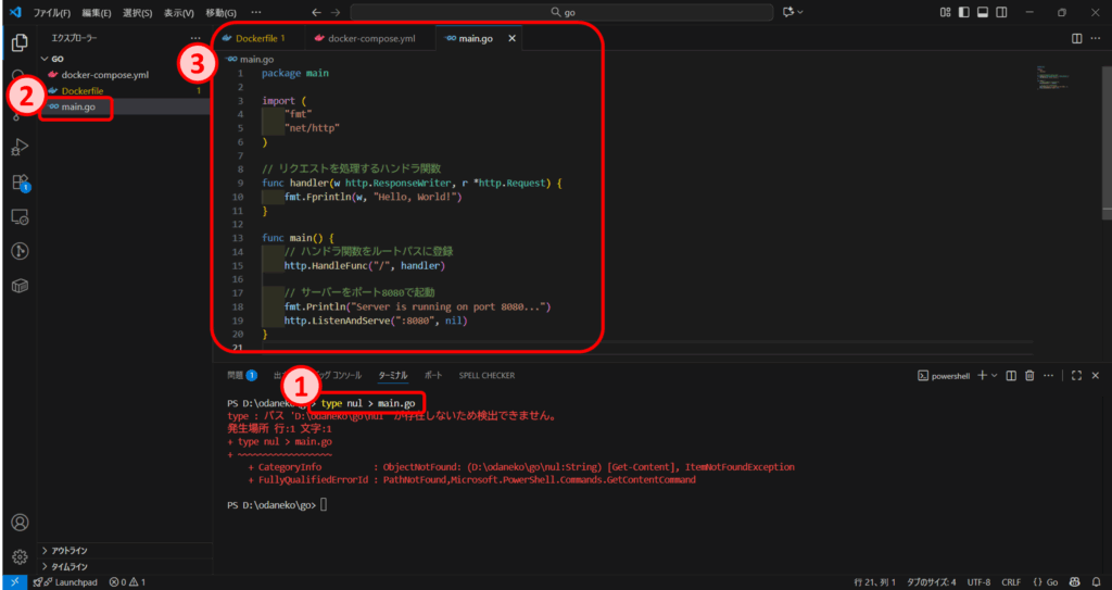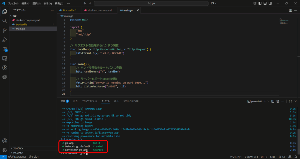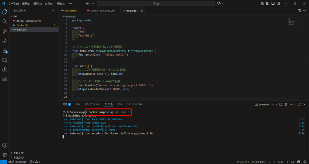 Qiitaの下記の記事を参考にDockerでGOの環境を作成してみました。