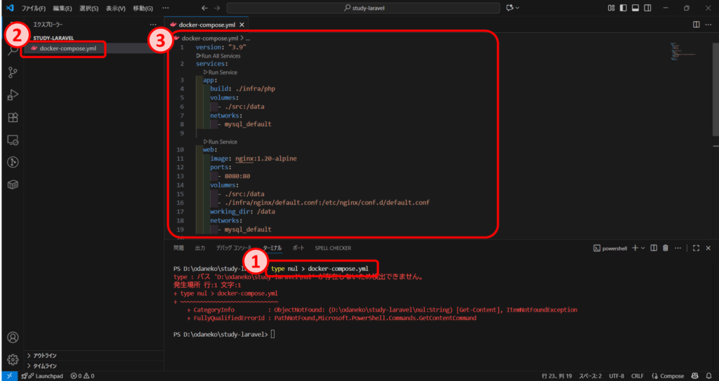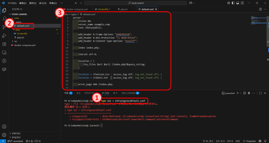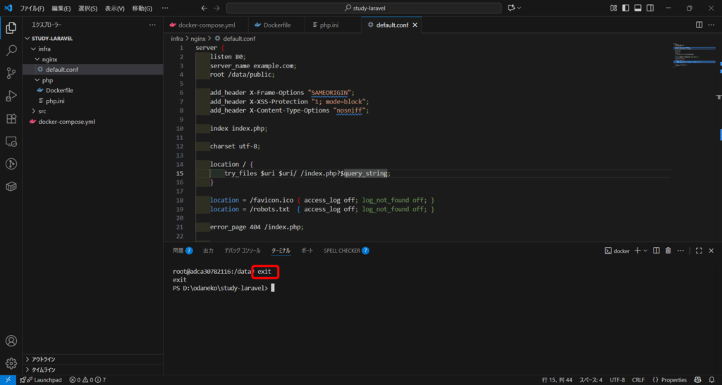 DockerでLaravel+nginx+別コンテナのMySQLの環境を構築してみる(Windows)