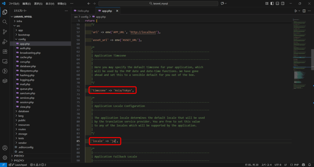 Laravelで日時を扱い始めたとき、時間がずれていることがあります。