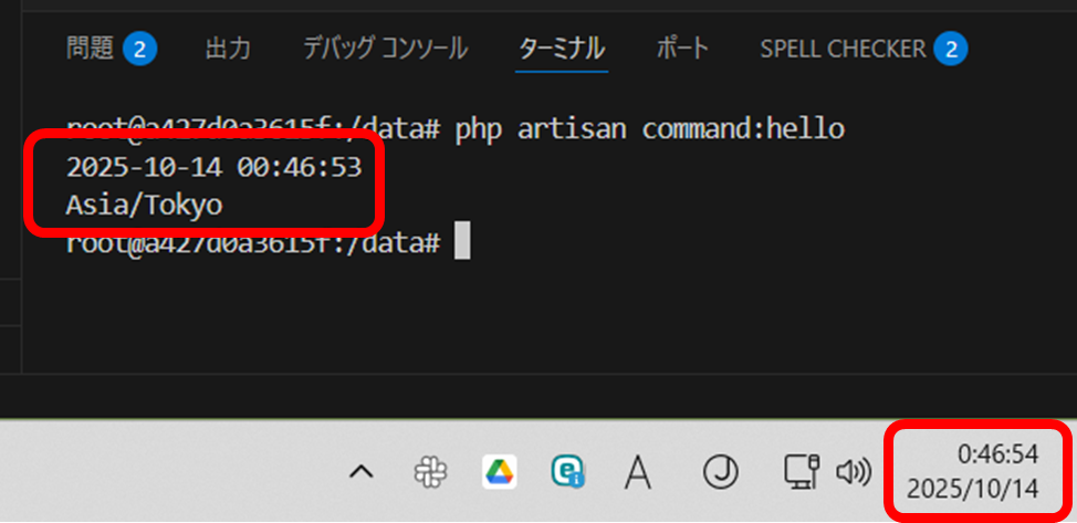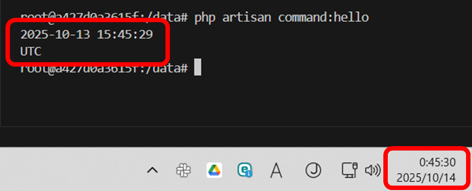タイムゾーンがAsia/Tokyoに変更され、時間が合いました。(スクショは一秒ずれていますが…)