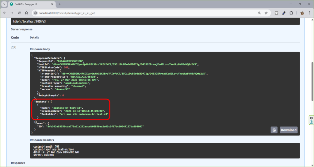 サンプルAPIを作ってみる(バケットを取得してみる)