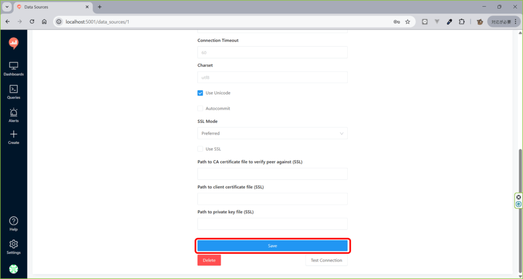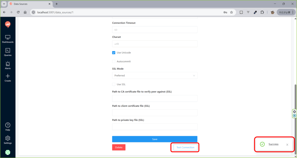 Test Connectionをクリックして、Successと表示されたらOKです。