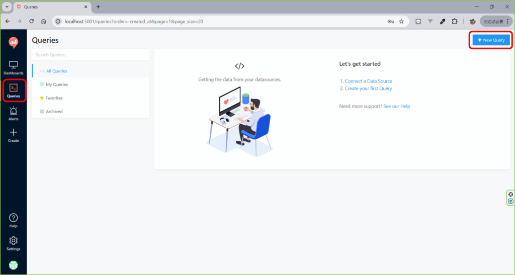 左側のQueriesをクリック→右上のNew Queryをクリック。