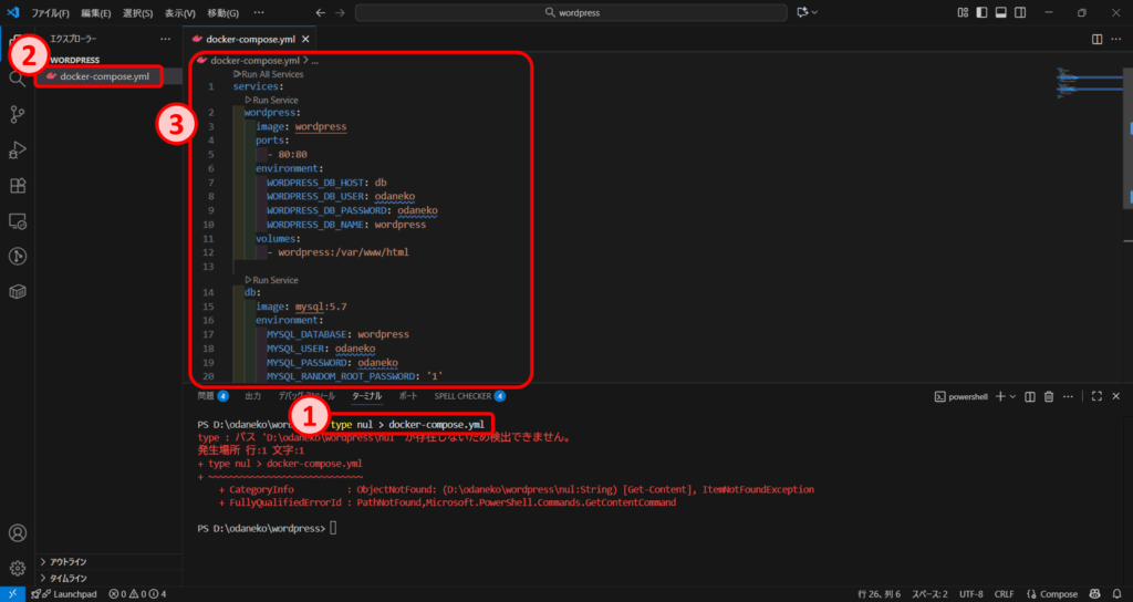 type nul > docker-compose.ymlエラーメッセージが表示されますが、YAMLファイルが作成されていれば問題ありません。