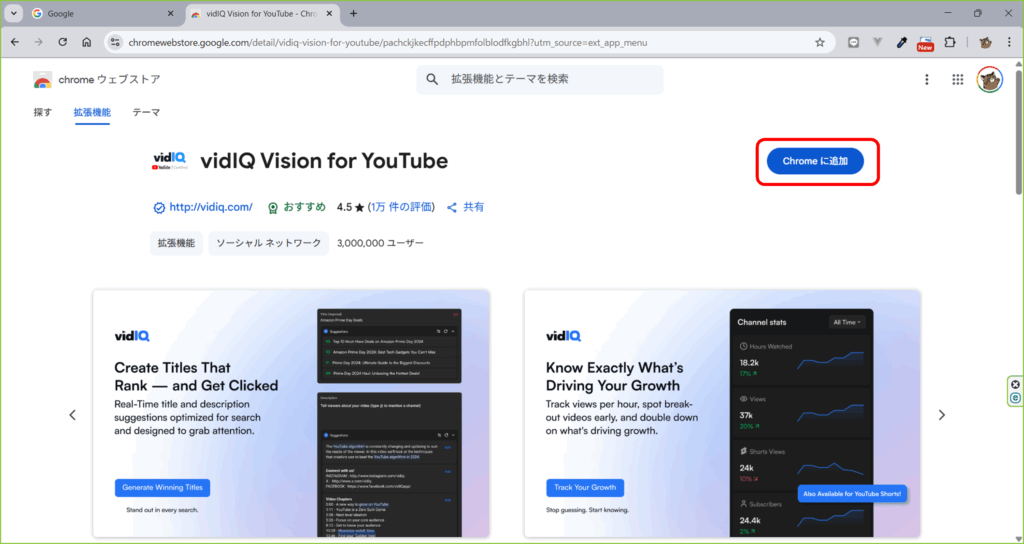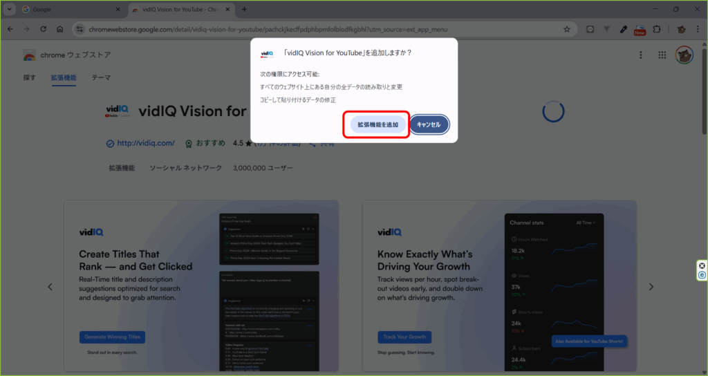 拡張機能「vidIQ」をインストールする
