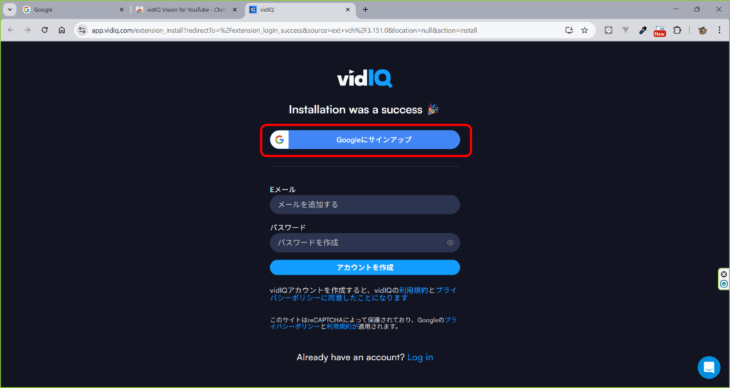vidIQのインストール確認