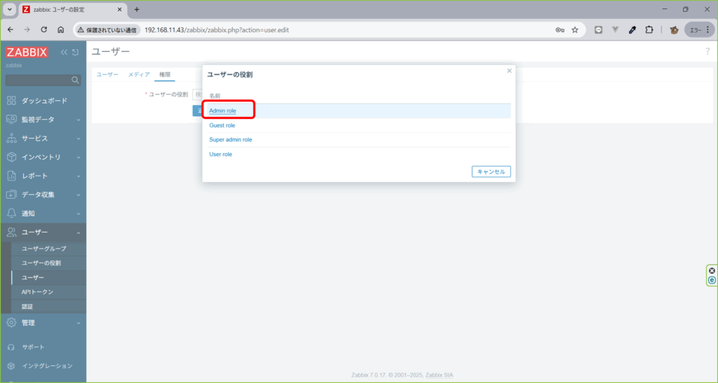 今回は管理者アカウントを作りたいので、役割はAdmin roleとします。