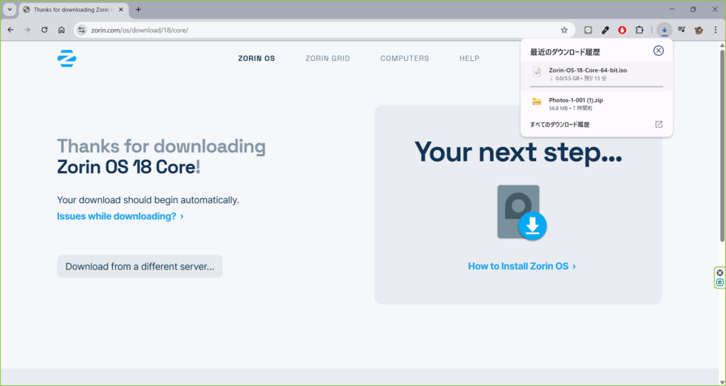 【Linux/Zorin OS】ISOファイルをダウンロードしてみる